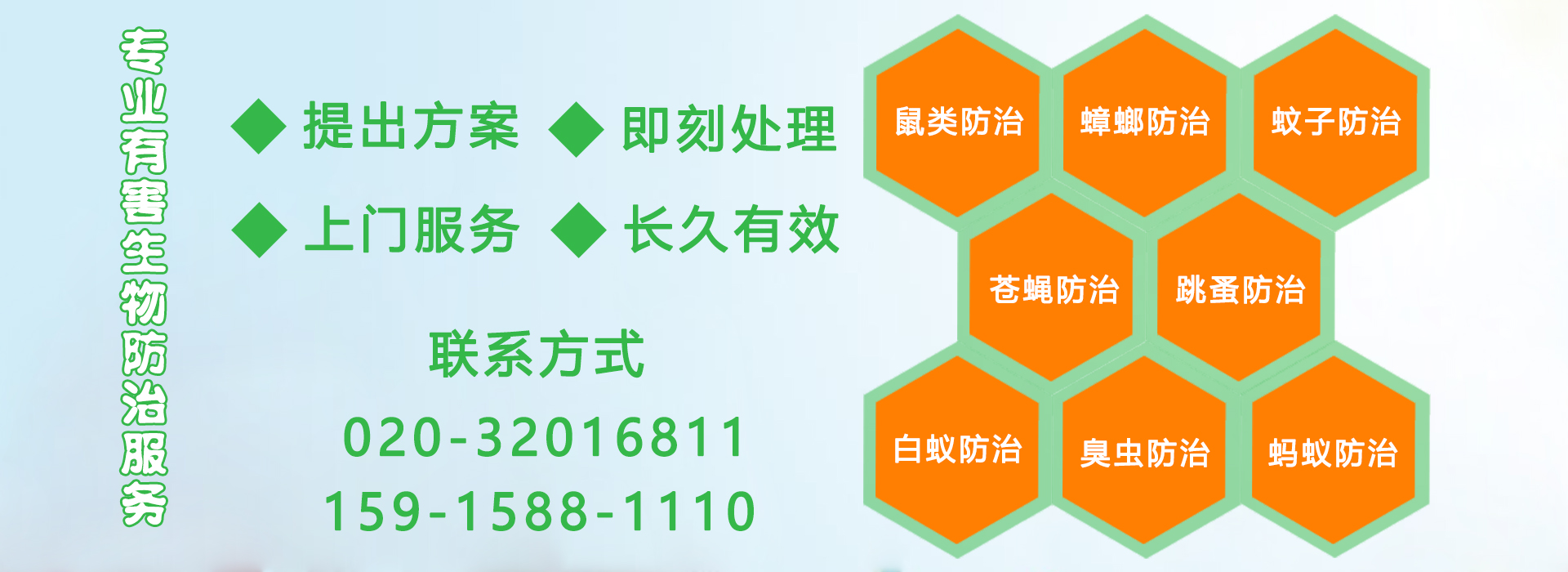 廣州億康環(huán)境科技有限公司聘請(qǐng)了多名資深業(yè)內(nèi)專(zhuān)業(yè)人士為顧問(wèn),擁有多名專(zhuān)家、教授組成的研發(fā)和客服服務(wù)團(tuán)隊(duì),公司引入了現(xiàn)代企業(yè)管理體系,優(yōu)化了以客戶(hù)為中心的服務(wù)流程,優(yōu)秀的管理團(tuán)隊(duì)以高技術(shù)、高標(biāo)準(zhǔn)、高品質(zhì)服務(wù)確保我們客戶(hù)的滿(mǎn)意。經(jīng)過(guò)多年的努力,公司培養(yǎng)了一批技術(shù)過(guò)硬的高素質(zhì)專(zhuān)業(yè)服務(wù)隊(duì)伍,裝備了國(guó)內(nèi)外先進(jìn)的消殺器械和環(huán)保、安全、高效的藥物,以專(zhuān)業(yè)化的防治技術(shù)為社會(huì)各行各業(yè)提供優(yōu)質(zhì)高效的除害服務(wù)。